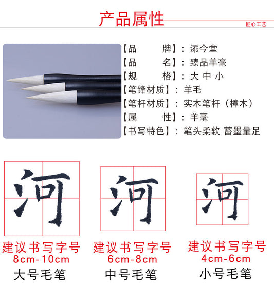 Handmade Professional Chinese Calligraphy Sumi Ink Writing Watercolor Painting Yanghao 羊毫 Brush Set for Beginner 3 pcs